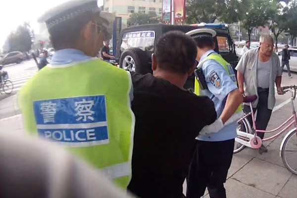 通過民警的執(zhí)法記錄儀和崗點(diǎn)的監(jiān)控可以看到,尹某當(dāng)時(shí)從三里崗方向向南行駛,沒有跟隨車流走正常行車道,而是徑直逆行過來,并直接向左拐向青年大街,中途被交警攔下,尹某有揮拳打人的動(dòng)作。