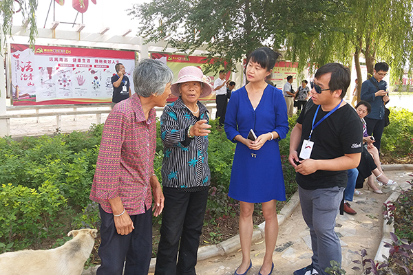 本報(bào)記者在法治文化廣場(chǎng)與村民拉家常