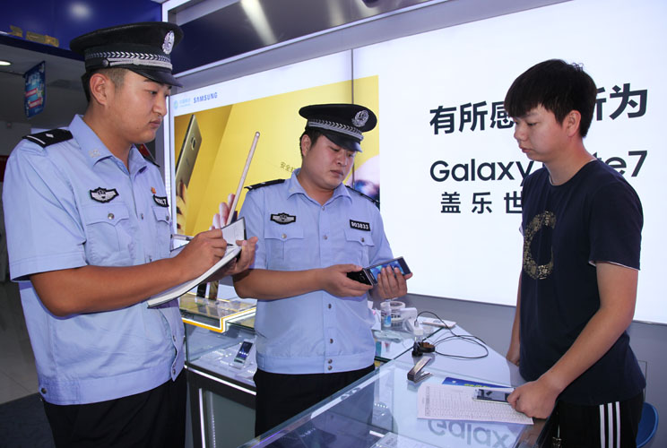 打擊“盜搶騙”行動開展以來,為加強(qiáng)對重點(diǎn)行業(yè)場所的有效管控,大洼縣公安局刑偵大隊深入了解治安情況,針對轄區(qū)手機(jī)市場、中小旅館等重點(diǎn)行業(yè)場所,組織警力采取有力措施進(jìn)行了專項整治。圖為民警正在檢查重點(diǎn)行業(yè)場所。