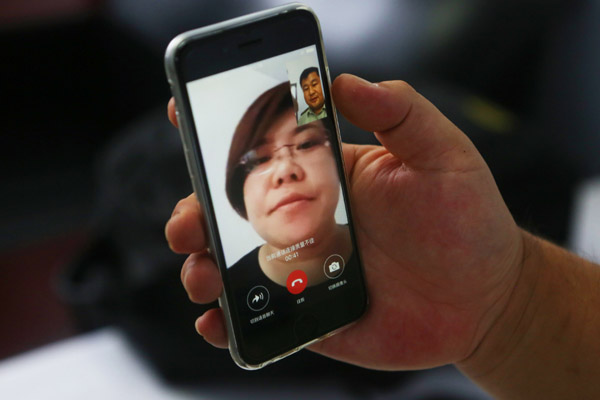 宮大偉經(jīng)常通過手機(jī)視頻對妻子姜咪噓寒問暖,關(guān)心妻子的病情