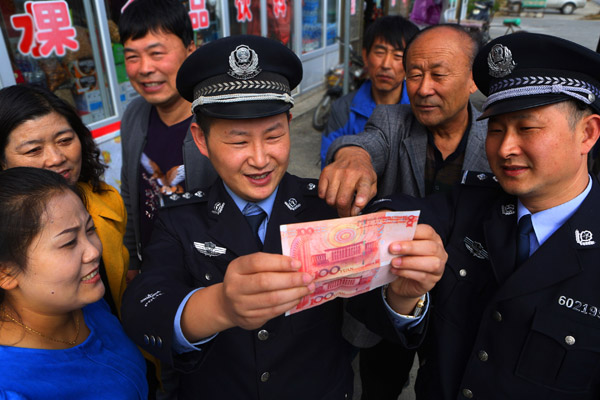 日前,東港市公安局北井子派出所民警在轄區(qū)開展識假幣宣傳活動(dòng),民警通過將收繳的假幣和人民幣對比的方式,教廣大群眾辨別假幣的基本知識,以預(yù)防上當(dāng)受騙。