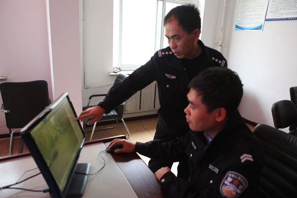 孫建凱在社區(qū)警務(wù)室查看監(jiān)控