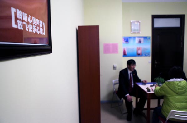 心理疏導(dǎo)室工作人員利用沙盤進(jìn)行心理疏導(dǎo)