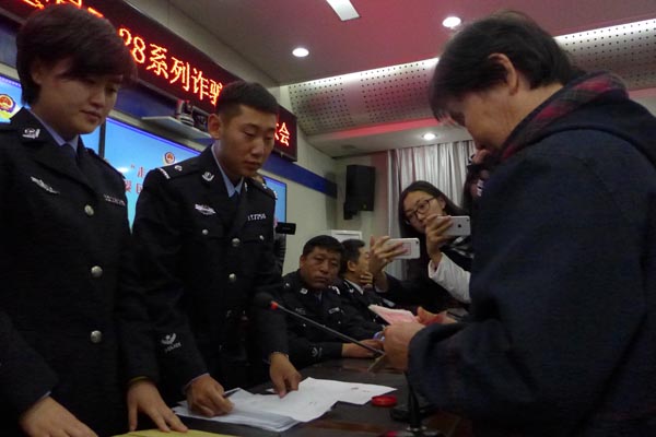 11月4日,在法庫縣公安局召開了“7·28”跨省系列詐騙案件返贓大會(huì)。當(dāng)日有100余名受害人現(xiàn)場領(lǐng)回了被騙款。