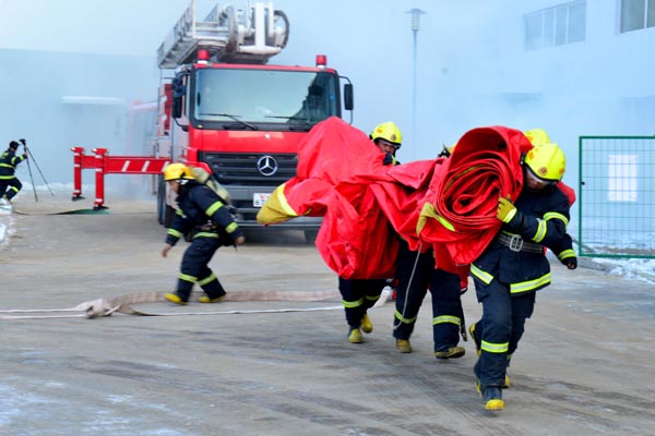 “我們?cè)谶@里,快來救救我們!”幾名被大火困在樓頂?shù)娜罕娤驙I救的消防官兵高聲呼救。日前,本溪市公安消防支隊(duì)組織了近百人的大型模擬火災(zāi)營救演練,在消防官兵指導(dǎo)下,近百名群眾在“火海”中采取不同的方式有序地進(jìn)行逃生和自救,經(jīng)過半個(gè)小時(shí)的“火海”搜救和高空營救,消防官兵成功地疏散和營救了被困者。此次演練極大地檢驗(yàn)了消防官兵救援能力,提高了廣大群眾的消防逃生自救能力。