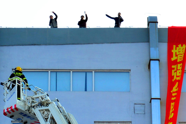 消防官兵用消防云梯營救被困群眾