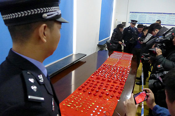本報(bào)訊 12月5日8時(shí),沈陽市公安局接到報(bào)案稱,蘇家屯區(qū)陳相街道金大福金店發(fā)生入室盜竊案,經(jīng)店主核實(shí)盤點(diǎn),被盜1811克黃金制品、300余克白銀制品。案發(fā)后,沈陽警方多警聯(lián)動合成作戰(zhàn),僅用90個(gè)小時(shí)即成功偵破此案,將犯罪嫌疑人閆某(男,50歲,沈陽市蘇家屯區(qū)人)抓獲,并在其家附近草垛內(nèi)將被盜贓物全部繳獲。