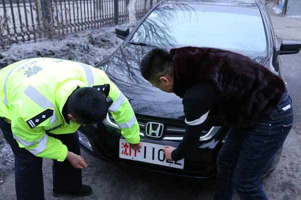 據(jù)本溪市公安交警支隊平山大隊三中隊民警王銳介紹,2月7日13時30分,在解放南二路巡邏中發(fā)現(xiàn)一臺掛有沈M11×××號舊軍用號牌的黑色雅閣轎車違法停放在路邊。當(dāng)民警準(zhǔn)備上前對該車進(jìn)行檢查時,駕駛?cè)送蝗粏榆囕v,加速駛離。民警見狀,立即通過手臺通報前方民警對該車開展攔截,同時駕車尾隨其后。