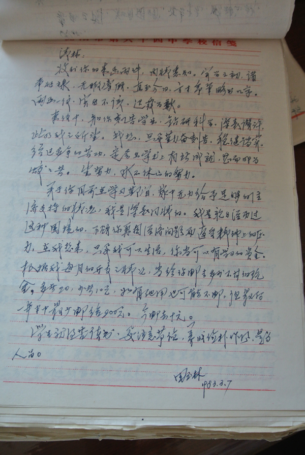 接到恩師田玉林這封信的時(shí)候,我在沈陽(yáng)師范學(xué)院讀大三。我和四哥1980年一起上大學(xué),家里負(fù)擔(dān)陡然加重。恩師田玉林默默地資助我,最終完成學(xué)業(yè)。