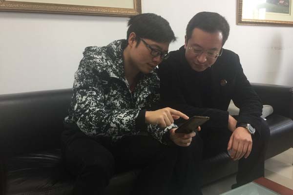 舒晨(左)向公證人員演示城市服務(wù)具體做法