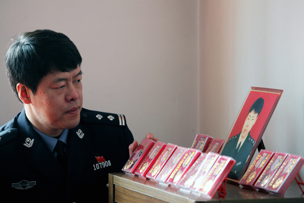 3月29日,林鵬和同事懷著崇敬的心情整理著趙建勇老主任的遺物。原沈陽市公安局鐵西分局紀(jì)檢室副主任趙建勇因工作繁重,積勞成疾,近半年的治療未能遏止病情的惡化,3月19日,趙建勇離開了他的戰(zhàn)友們。林鵬火線受命,走上了老大哥的崗位,這是他接任的第三天,紀(jì)檢工作肩負(fù)更加重要的使命,需要?jiǎng)傉话?,?duì)林鵬而言更是鐵血的錘煉。又是一年清明時(shí),這個(gè)漢子也流露出他的柔情,他想起了公安戰(zhàn)線上無私奉獻(xiàn)的戰(zhàn)友,想起了為公安事業(yè)、為人民犧牲的弟弟林濤……