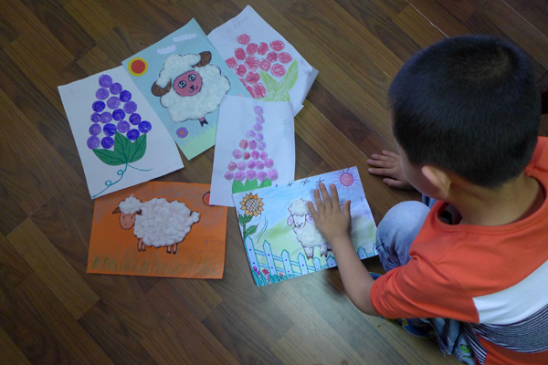 啟音班的學(xué)生正在觀看視頻教學(xué),這些孩子讀得懂唇語,也能用手語交流。班主任孫蕾老師展示了孩子的假期作品:色彩鮮艷的小鎮(zhèn)、皮卡丘和它的伙伴們、七龍珠……每一幅的用色都十分明亮,畫面都十分溫暖。好的作品會(huì)被選出,裝裱在走廊上。孫老師介紹,這里的孩子們大部分會(huì)一些特長,班上的一位小姑娘展示了她的拉丁舞才藝,因?yàn)樗牪灰?,所以跳舞要在心里?shù)著節(jié)拍,同時(shí)做出相應(yīng)的動(dòng)作。