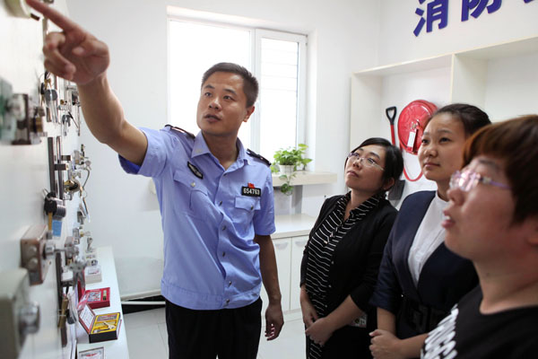 8月30日,錦州市公安局松山分局南山派出所商大社區(qū)警務(wù)室民警李澍在為居民講解不同級(jí)別門(mén)鎖的區(qū)別